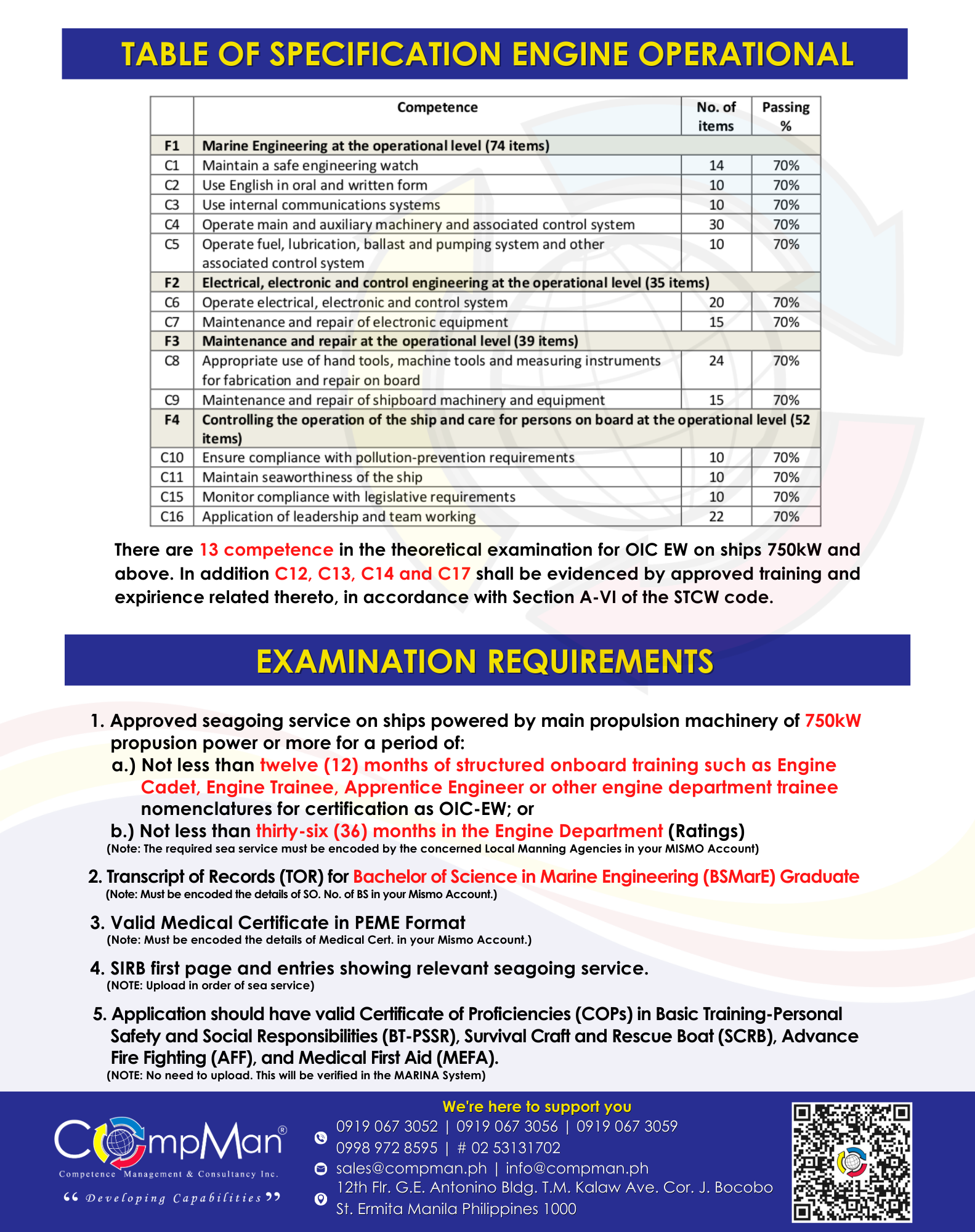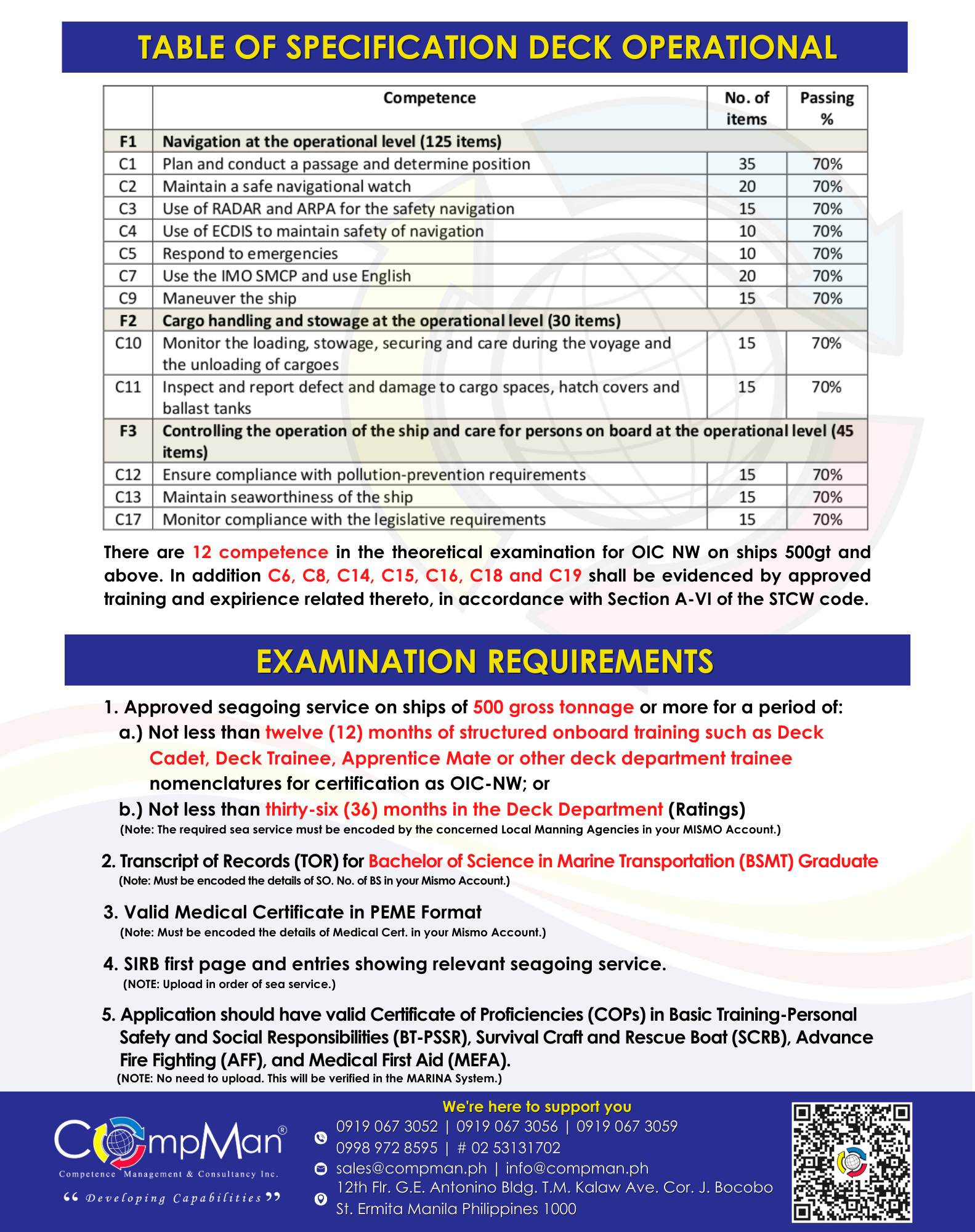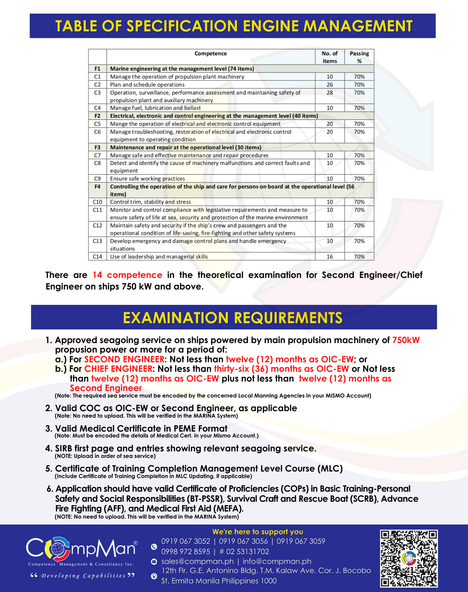 At Competence Management Consultancy (COMPMAN) Inc., we believe in the importance of training and review for Licensure Examinations. These processes not only help you pass the exam but also build the knowledge, understanding and confidence you need for real-world tasks on board ships, allowing you to compete and excel globally.