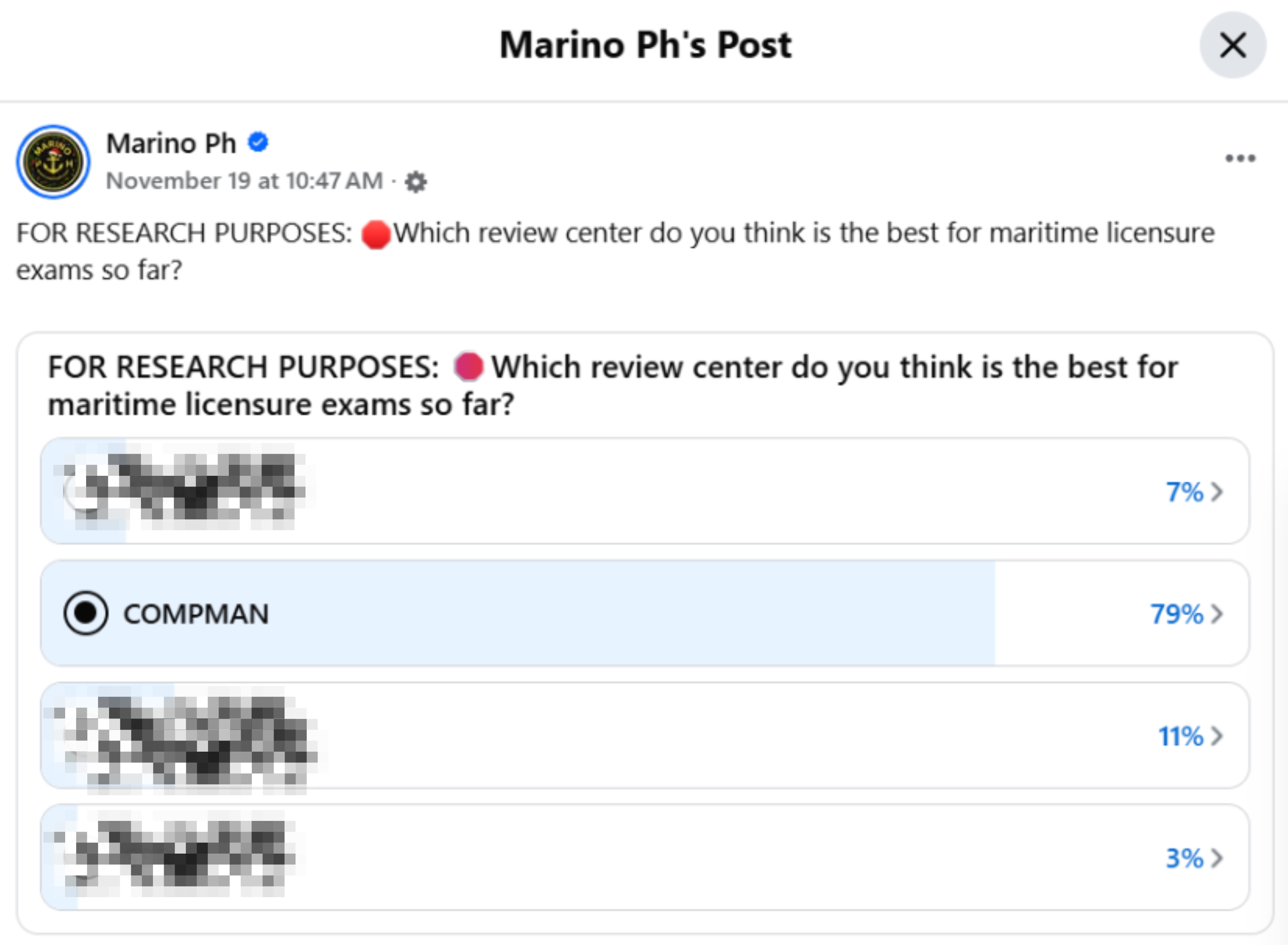 Recognized by seafarers as the best maritime review center in the Philippines done by Marino Ph Social Media Poll